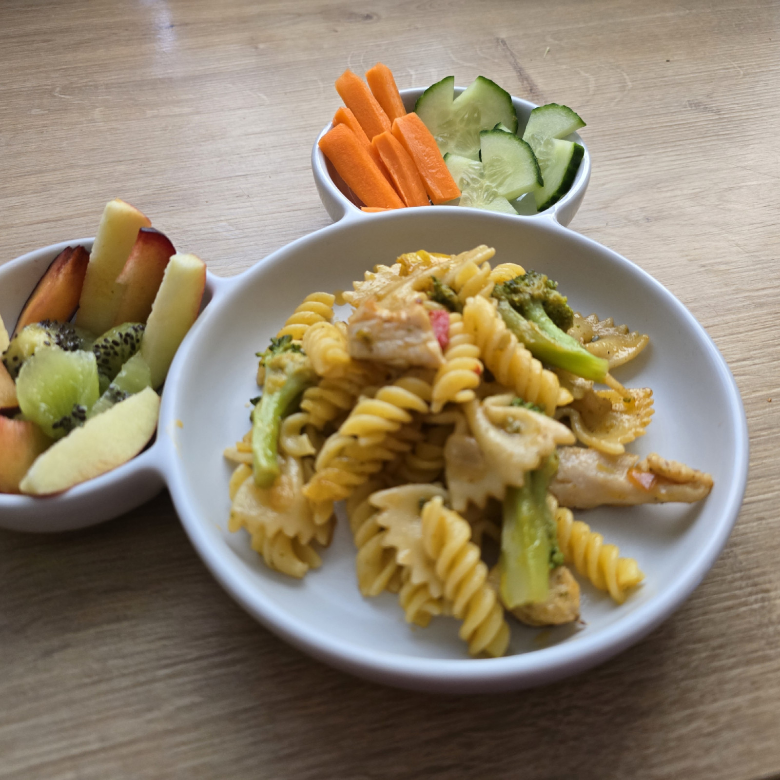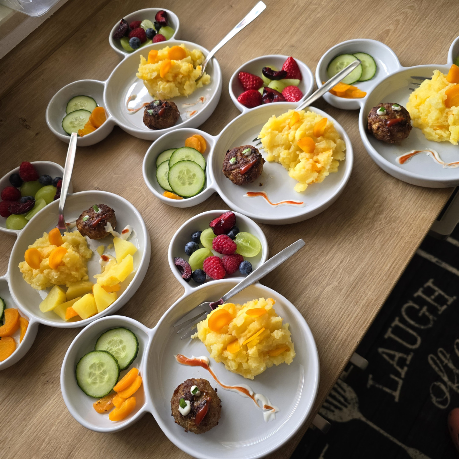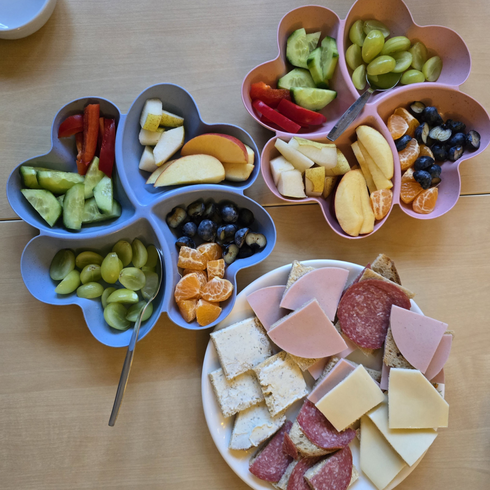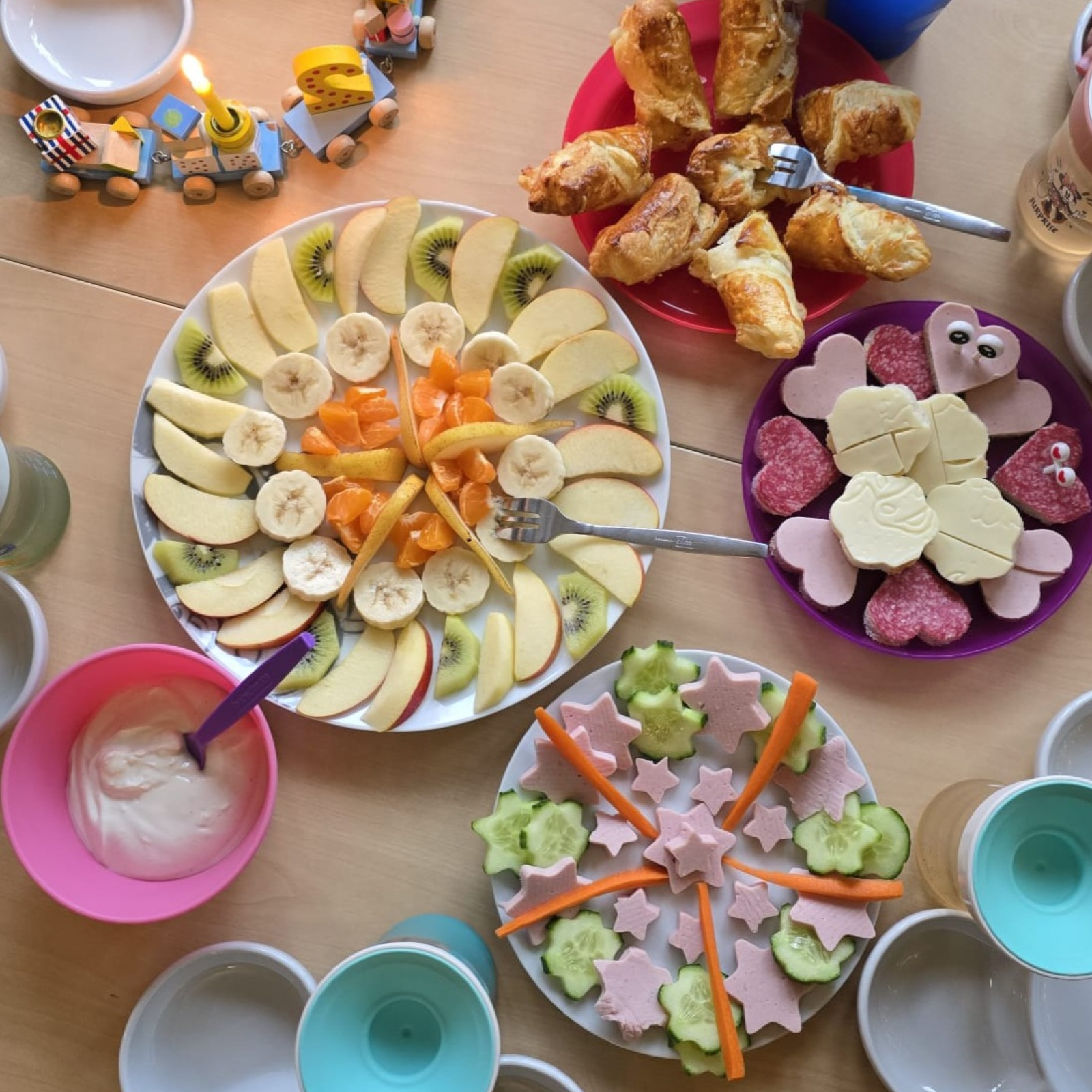 Jedes Kind entscheidet selbst, wie viel es essen möchte, und nimmt sich die Zeit, die es dafür benötigt. Süße Aufstriche oder besondere Mittagsgerichte gibt es nur zu besonderen Anlässen, wie Geburtstagen. Grundsätzlich lege ich Wert auf eine ausgewogene Mischung aus tierischen sowie vegetarischen und veganen Lebensmitteln und tausche beispielsweise Aufschnitt gerne auch gegen pflanzliche Alternativen mal aus.
