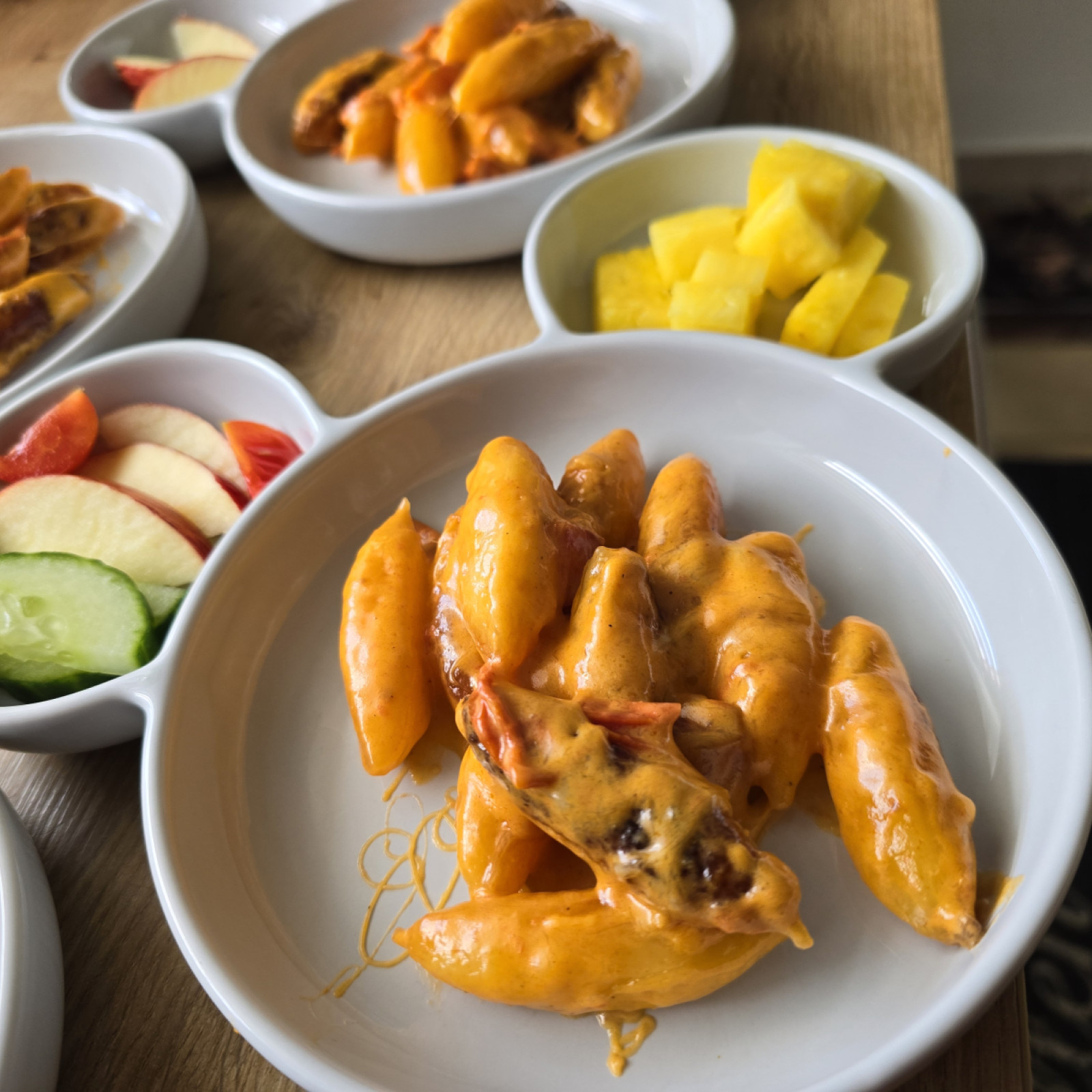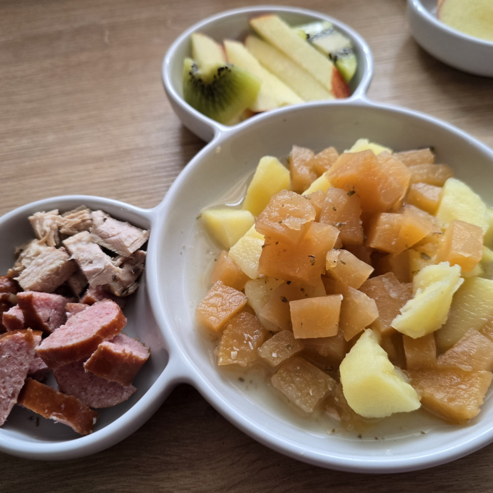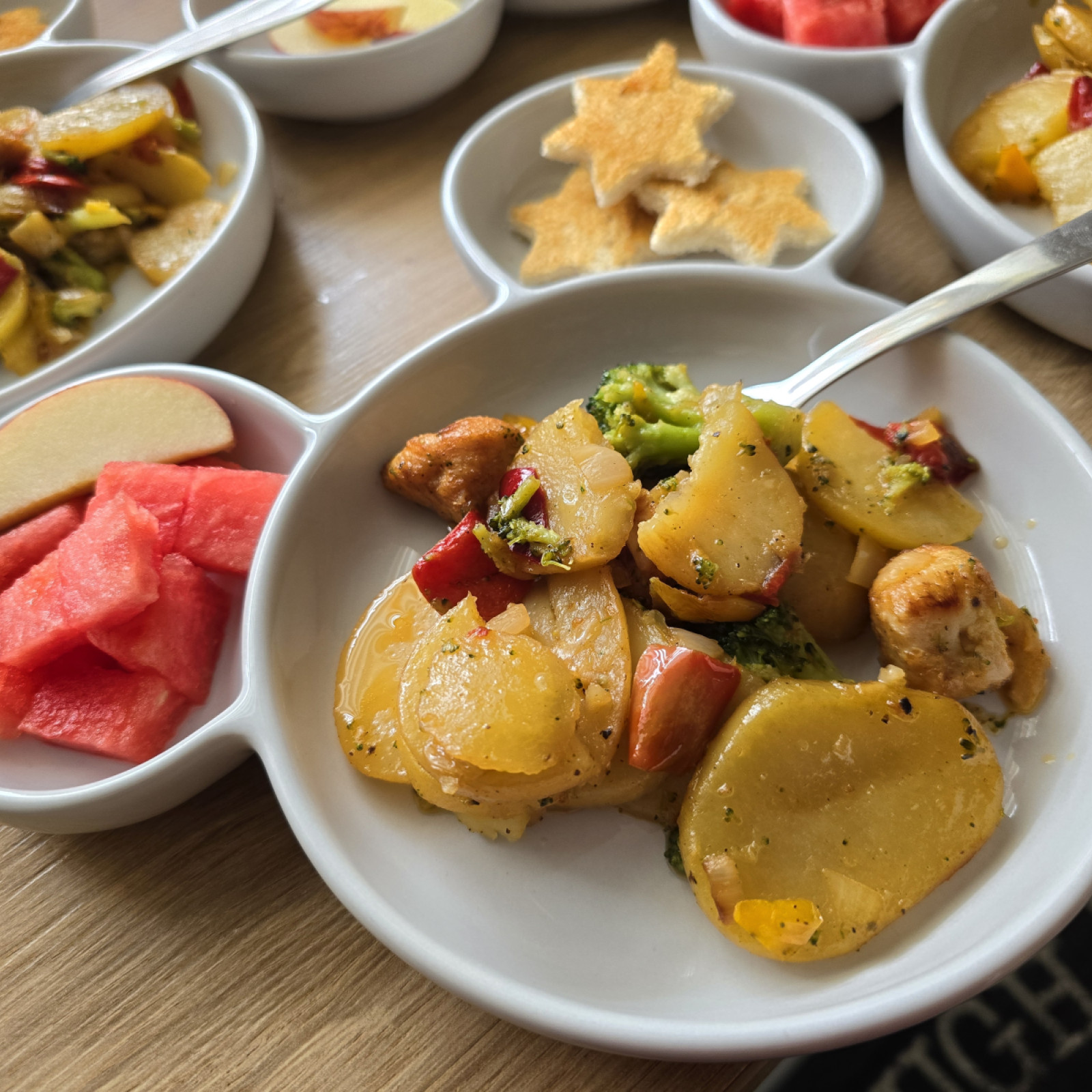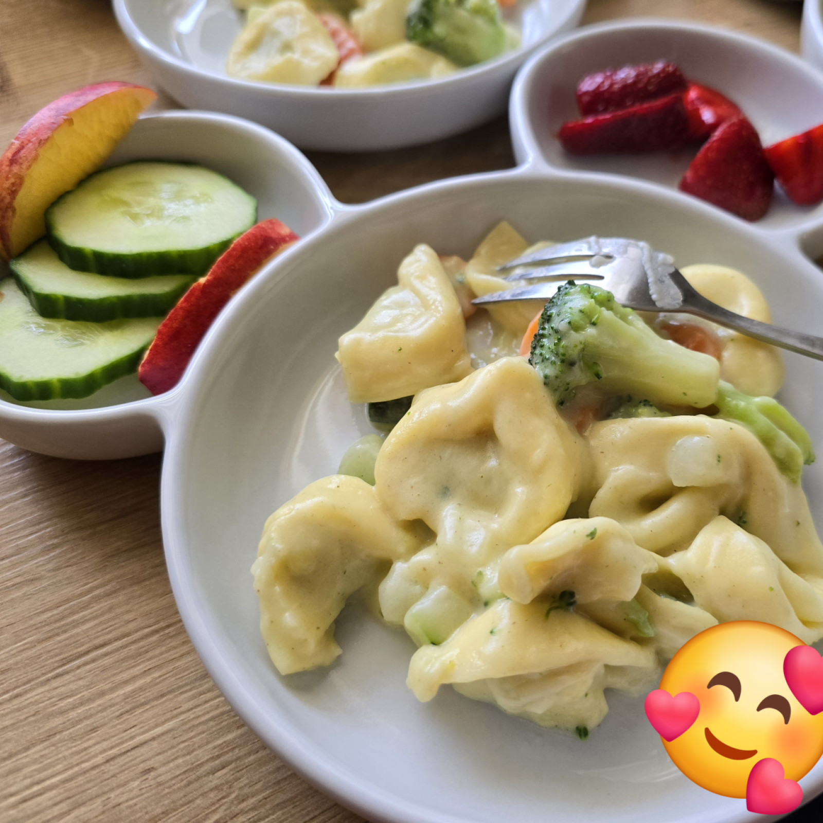 Jedes Kind entscheidet selbst, wie viel es essen möchte, und nimmt sich die Zeit, die es dafür benötigt. Süße Aufstriche oder besondere Mittagsgerichte gibt es nur zu besonderen Anlässen, wie Geburtstagen. Grundsätzlich lege ich Wert auf eine ausgewogene Mischung aus tierischen sowie vegetarischen und veganen Lebensmitteln und tausche beispielsweise Aufschnitt gerne auch gegen pflanzliche Alternativen mal aus.