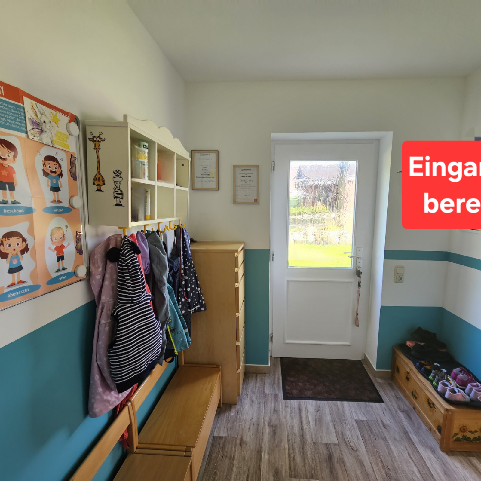 Zusätzlich verfügt die Kindertagespflege über einen eigenen Eingangsbereich mit Garderobe sowie ein kleines Bad, das auf die Bedürfnisse der Kinder abgestimmt ist.